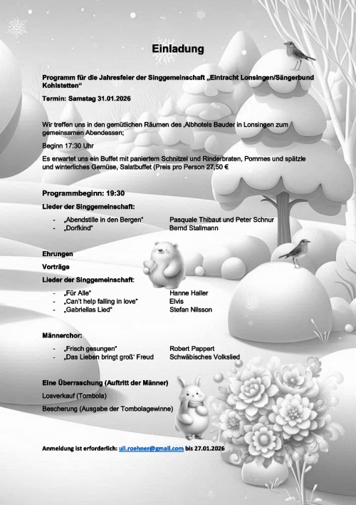 Wir, die Chorgemeinschaft "Eintracht Lonsingen/Sängerbund Kohlstetten", sucht keine Starsänger, sondern Menschen jeden Alters, die Freude am Singen und an der Geselligkeit haben. Unser Repertoire ist vielfältig: Von traditionellen Volksliedern bis zu modernen Stücken und mit unserer Chorleiterin Mari Vihmand wird jede Probe zum Vergnügen. Kommen sie vorbei!